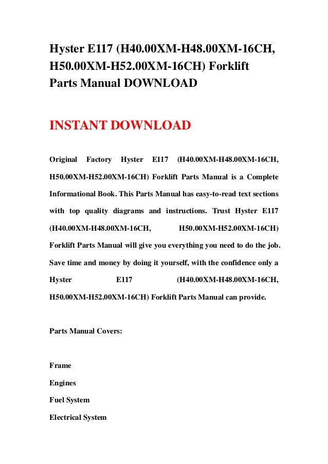 [5+] Hyster H155xl2 Parts Manual, Hyster 155 | Lincoln Equipment Liquidation